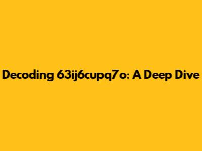Decoding 63ij6cupq7o: A Deep Dive