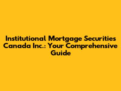 Institutional Mortgage Securities Canada Inc.: Your Guide
