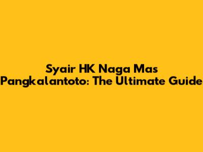Syair HK Naga Mas Pangkalantoto: The Ultimate Guide